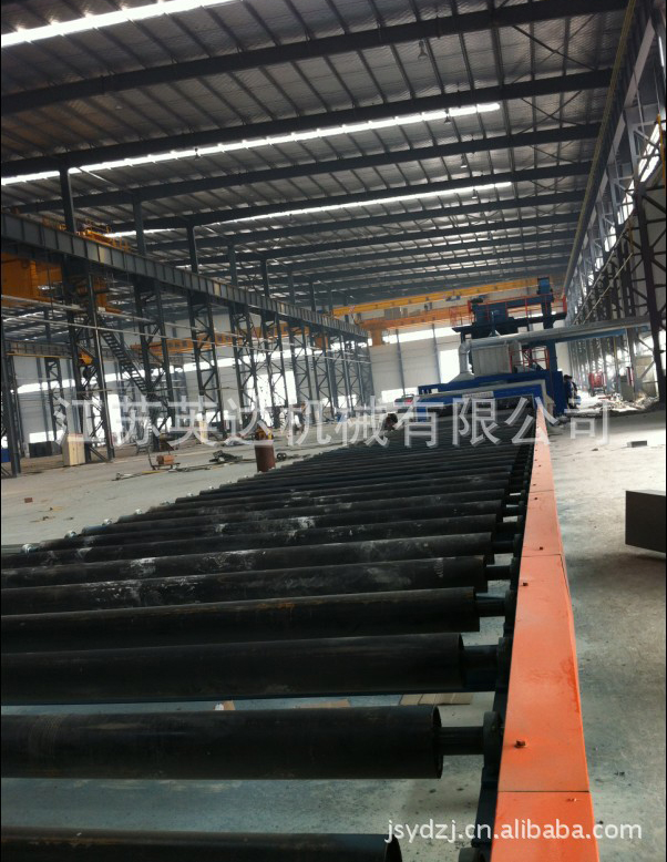 本鋼材預(yù)處理是在國內(nèi)外同類產(chǎn)品的基礎(chǔ)上,開發(fā)的機電一體化的新產(chǎn)品,整條流水線采用進(jìn)口工業(yè)PLC機控制,實現(xiàn)了從上料→送進(jìn)→拋丸清理→清掃→噴漆→烘干→送出全過程自動化(并可以自動和手動進(jìn)行切換),操作方便自如,是目前對鋼板、型材、結(jié)構(gòu)件進(jìn)行表面除銹、除焊渣去應(yīng)力、噴漆、等預(yù)處理的理想的自動化成套設(shè)備。