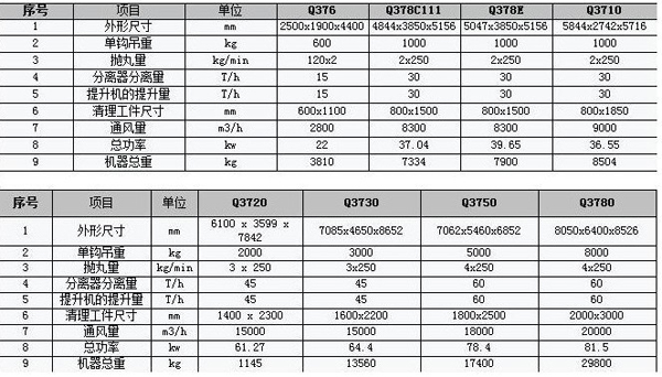 二、 Q37系列吊鉤拋丸清理機(jī)技術(shù)參數(shù)